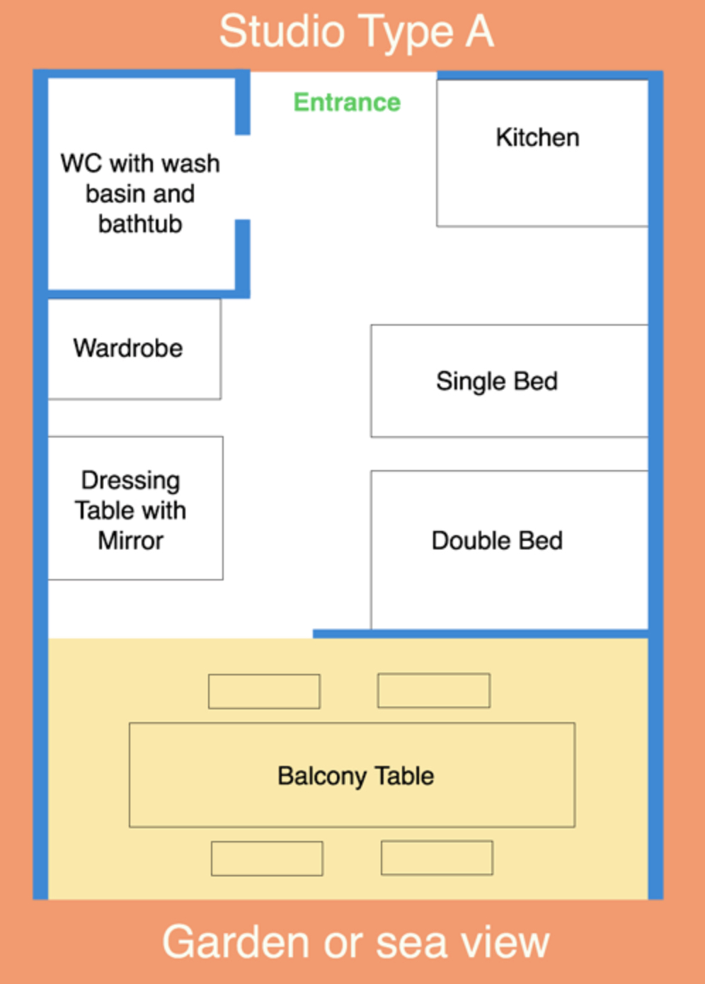 • Ιδιωτικό μπαλκόνι με θέα στη θάλασσα ή το κήπο (επιπλωμένο με