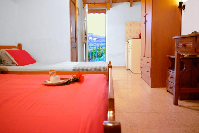 Το Blue Studio είναι 25 τ.μ. και διαθέτει 1 διπλό και 1 μονό κρεβάτι. Όλα